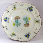 Seltene runde Platte mit Nelken und Granatäpfeln