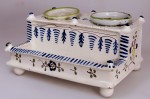 Bemalung in Blau auf kleisterblauer Glasur